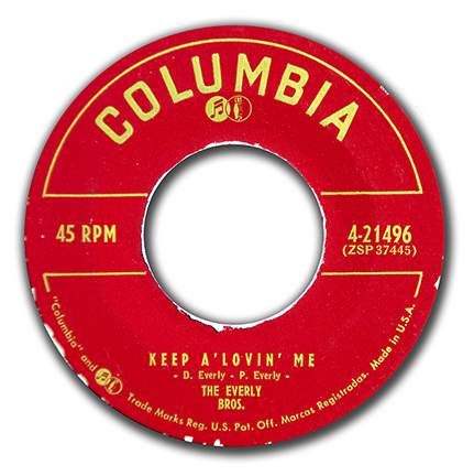 special PROMO ONLY INSERT MB $50 165. The Everly Bros. "Keep A' Lovin' Me/The Sun Keeps Shining" COLUMBIA 21496 VG RARE STOCK COPY OF THEIR VERY FIRST