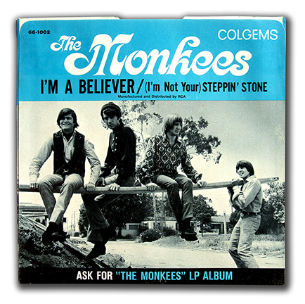 Clarksville/Take A Giant Step" COLGEMS 1001 /MINT Picture sleeve only MB $30 253. The Monkees "I'm A Believer/(I'm Not Your) Steppin' Stone" COLGEMS 1002 M-/M- With PICTURE SLEEVE MB $30 259. Mouse And The Traps "Sometimes You Just Can't Win/Cryin' Inside" FRATERNITY 1005 M-/VG+ WHITE LABEL PROMO with PICTURE SLEEVE MB $50 262. Ricky Nelson "Ricky EP with Cover" VERVE EPV-5048 M-/M- BEAUTIFUL COPY MB $50 264. Ricky Nelson "I Got A Feeling/Lonesome Town" IMPERIAL 5545 /MINT PICTURE SLEEVE ONLY MB $20 273. Alfred Newman "She Loves The