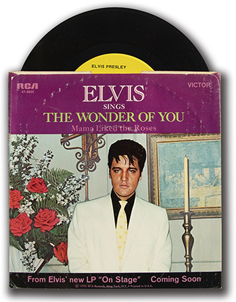 Rain/My Little Friend" RCA 9791 M/M- YELLOW LABEL PROMO with PICTURE SLEEVE MB $30 299. Elvis Presley "The Wonder Of You/Mama Liked The Roses" RCA 9835 M/VG+ YELLOW LABEL PROMO with PICTURE SLEEVE MB $30 301. Elvis Presley "O Come, All Ye