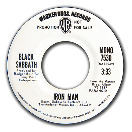 side . . . pressed on BEAUTIFUL BLUE VINYL MB $25 349. Black Sabbath "Iron Man/SAME" WARNER BROTHERS 7530 M- WHITE LABEL PROMO with MONO version on one side and STEREO version on the other side MB $20 352. Sam The Sham "Wooly Bully/Ain't Gonna Move" M-G-M 14021 M- YELLOW LABEL PROMO MB $20 354. Neil Sedaka "Breaking Up Is