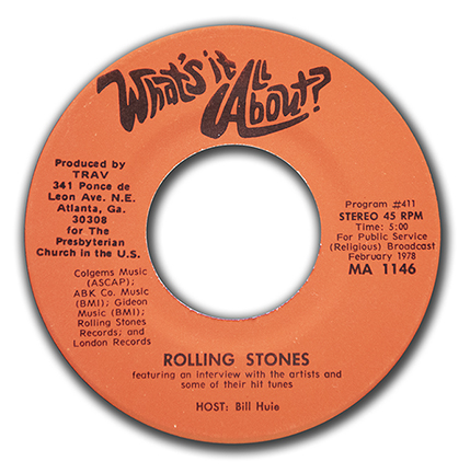 side . . . AND comes with SPECIAL PROMO ONLY PICTURE SLEEVE! MB $100 338. The Rolling Stones "Fool To Cry/SAME" ROLLING STONES 19304 M- LIGHT BLUE LABEL PROMO with SAME SONG on both sides MB $20 340. The Rolling Stones/George Benson "February 1978 INTERVIEW" WHAT'S IT ALL ABOUT? 1146 M- Five